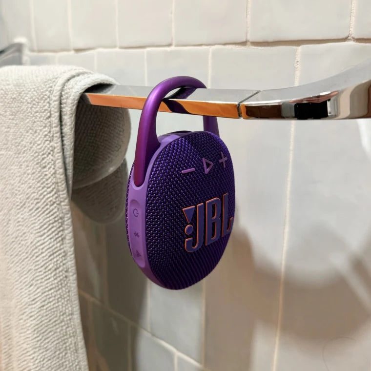 مكبر صوت بلوتوث صغير وقوي، مزود بكليب (Carabiner) متكامل، مقاوم للماء والغبار بمعيار IP67، صوت JBL Pro، وعمر بطارية حوالي 12 ساعة؛ مثالي للخروج والمغامرات وربطه بحقيبة أو ملابس.